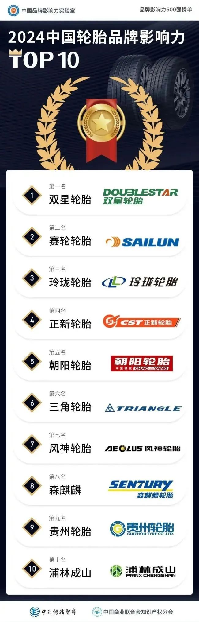 (图为2024中国轮胎品牌影响力排行榜)