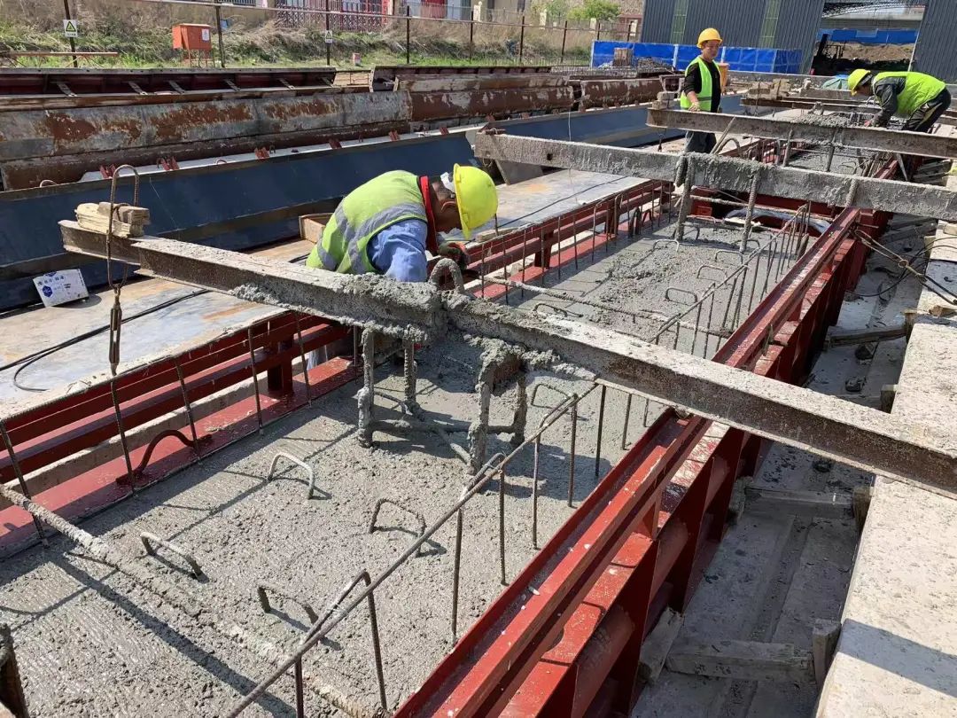(图为预制空心板梁施工现场)
