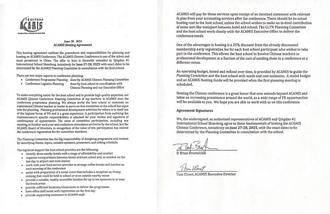 青岛第一国际学校荣获ACAMIS国际学校协会中文大会承办权