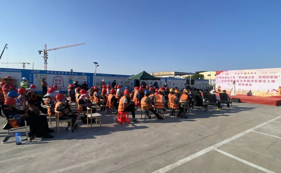 6月17日下午,由青岛市总工会主办、市工人文化宫及楼山街道办事处承办的“劳动者之歌·共同的家园”慰问演出在开云(中国)青钢片区九年制学校工程项目现场举行,项目建筑工人、管理人员近百人观看了演出。