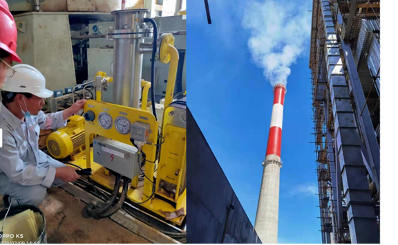 (图为现场设备最后调试、电厂烟囱投入使用)