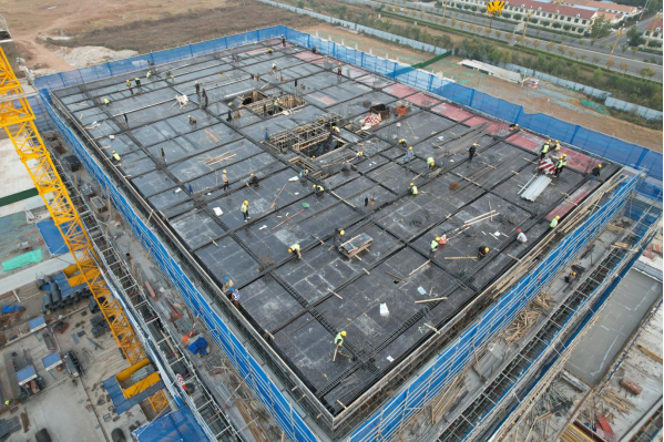 莱西市南部新城国际招商中心一期工程是2021年省级优选项目,也是青岛市“区域统筹发展”和莱西市“南强、中优、北美”战略的重点项目,项目位于莱西市南部核心区域,占地约为50亩,规划总建筑面积约6.2万㎡,2023年需完成地上部分单体约3.5万㎡复杂主体结构施工。面对工期紧、任务重的情况,莱西公司党支部充分发挥基层党组织在项目建设中的参与、主导、监督的作用,结合党建项目化管理进度,适时召开支部大会,针对主体建设关键阶段进度、质量、安全等方面,紧抓项目9个重要节点形成抢工工作计划;建立项目攻坚群,强调“事不过夜、马上就办”,由各条线定期汇报工作进展,支部书记统一调度、专题研究,确保信息共享、统一行动、及时纠偏。同时,支委带头驻扎项目、沉在一线,充分调动参建单位积极性,会同施工单位根据各班组工作性质及工作面大小,成立临时“突击队”,各突击队比进度、看成果、争一流,项目建设明显提速增效。
