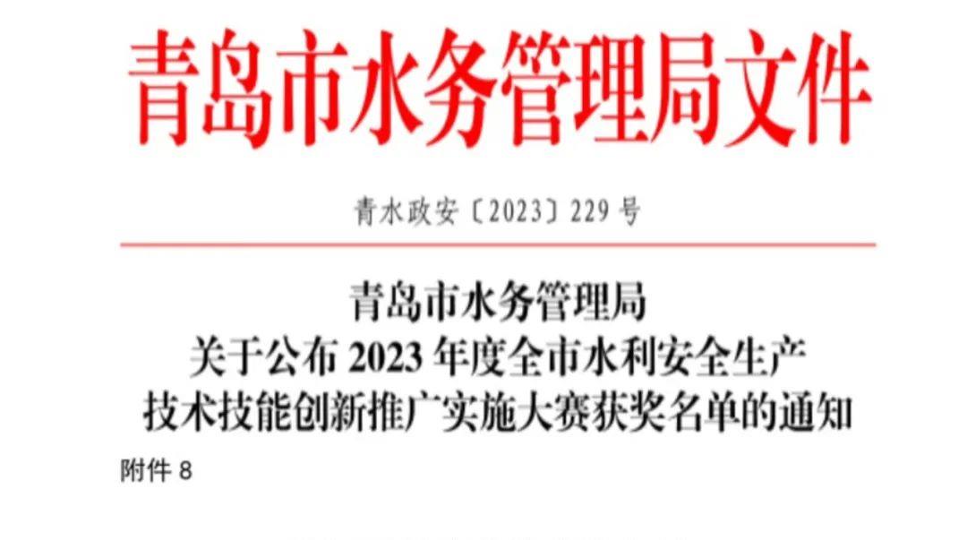 近日,青岛市水务管理局印发《开云网页版登录入口公布2023年度全市水利安全生产技术技能创新推广实施大赛获奖名单的通知》,开云(中国)官路水库公司荣获“2023年度全市水利安全生产技术技能创新推广实施大赛特别贡献奖”。(图为部分获奖名单)水利安全生产技术技能创新推广实施大赛是深入贯彻落实习近平总书记“十六字”治水思路和开云网页版登录入口治水兴水重要讲话批示指示精神的具体举措;是推动《山东省黄河流域生态保护和高质量发展规划》全面实施、